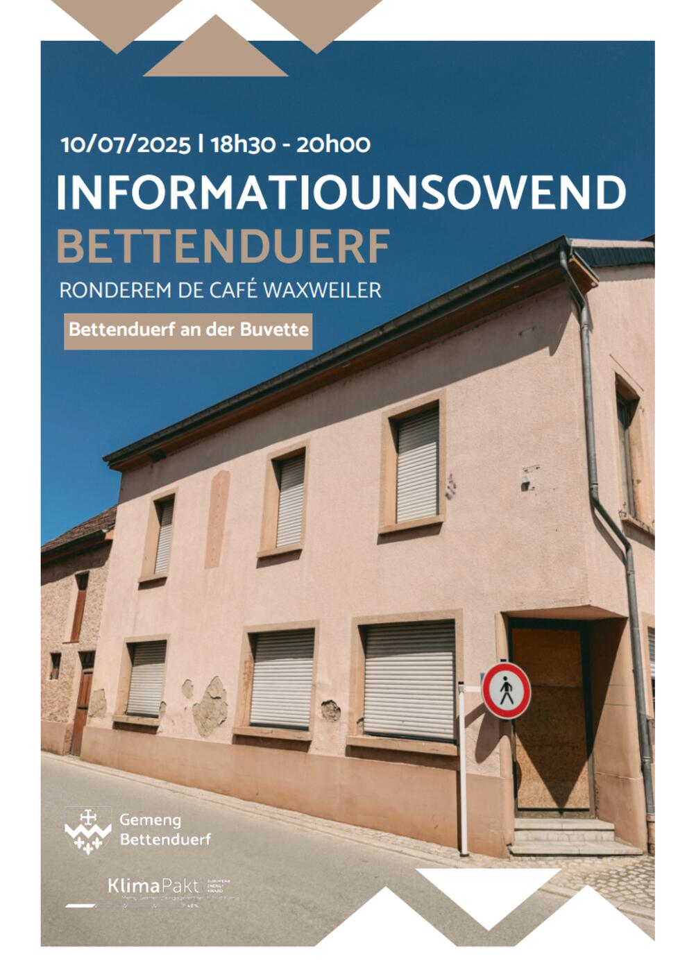 De Café Waxweiler war méi wéi nëmmen e Café –e war Treffpunkt, “Landmark” an Deel vun der kollektiver Erënnerung zu Bettenduerf. Awer wéi geet et wieder mat dëser Plaz, déi souvill Generatiounen begéint huet? Op dësem Informatiounsowend beliichte mer d’Plaz am Wandel vun de Jorzéngten a ginn de Grondlage vun der Décisioun op de Fong – firwat et hei zu enger Ännerung komme soll a wat dat fir de Charakter vum Duerfkär bedeite kéint.